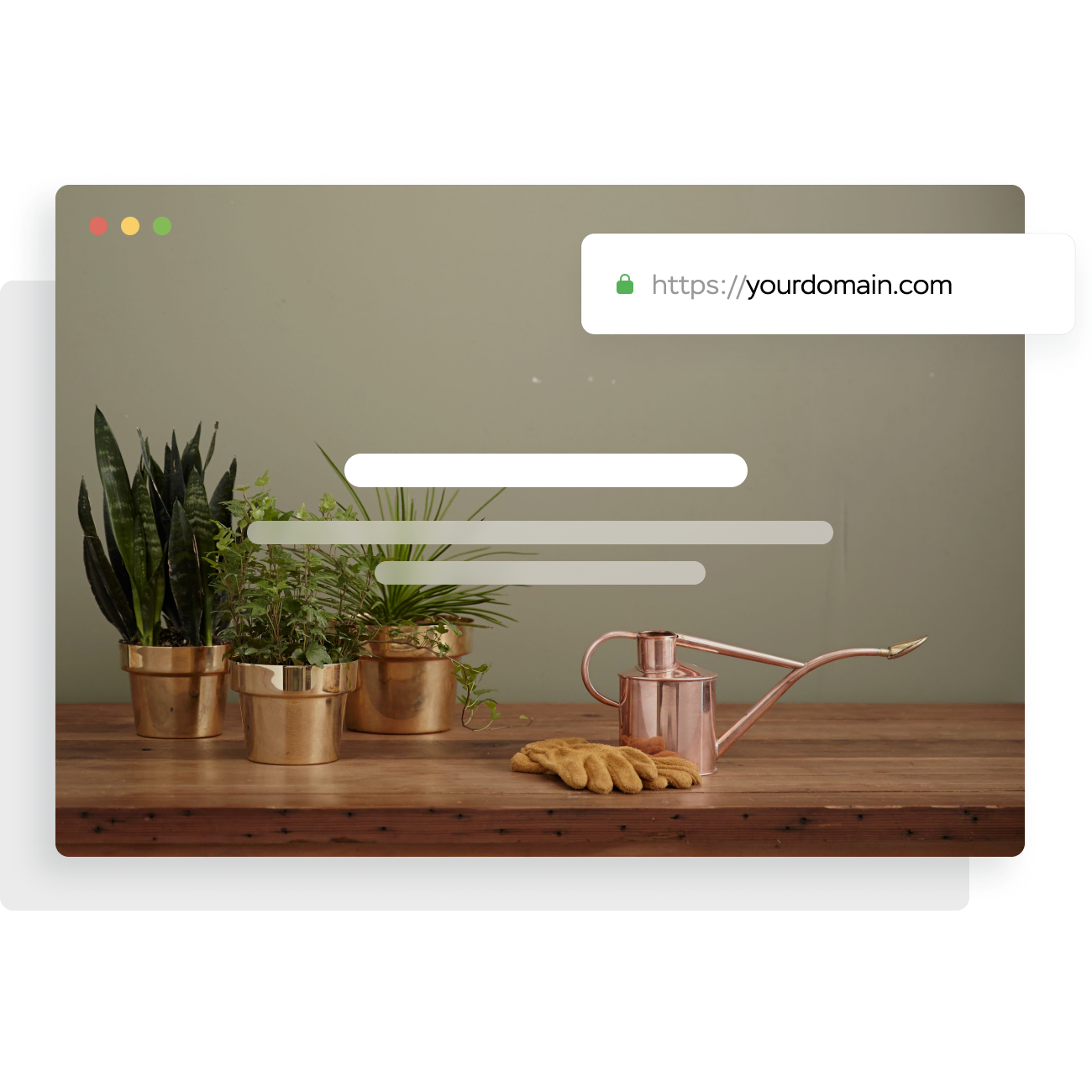 Renforcez votre marque avec un domaine personnalisé. Utilisez celui que vous possédez déjà ou enregistrez-en un nouveau chez nous. Tous les domaines bénéficient automatiquement du HTTPS, gratuitement.
