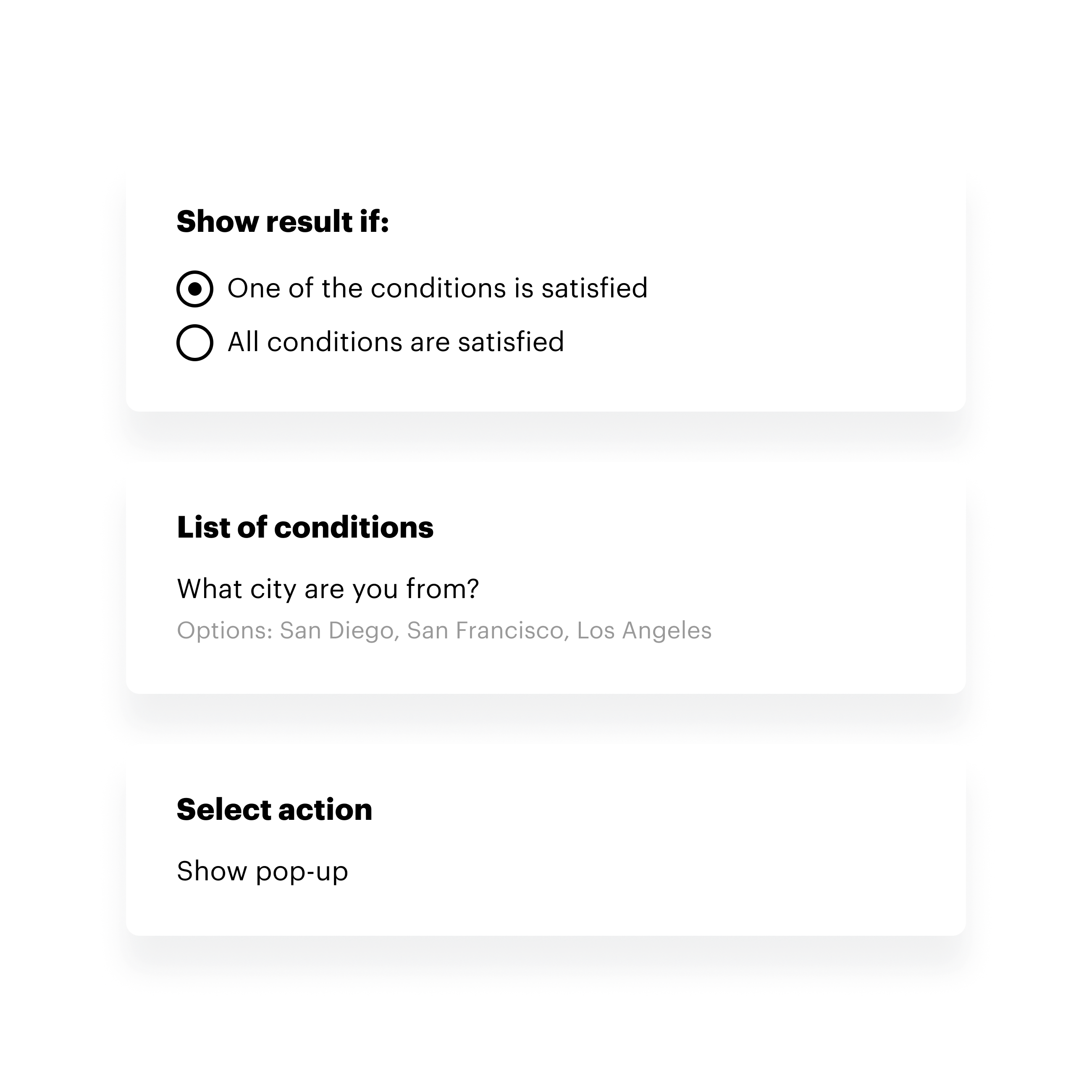 Personnalisez les quiz pour chaque visiteur : posez des questions en fonction des réponses données. Les visiteurs n'auront pas à répondre à des questions non pertinentes, et vous obtiendrez des informations plus détaillées.